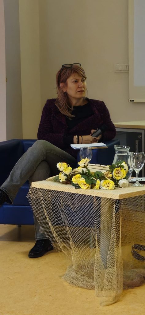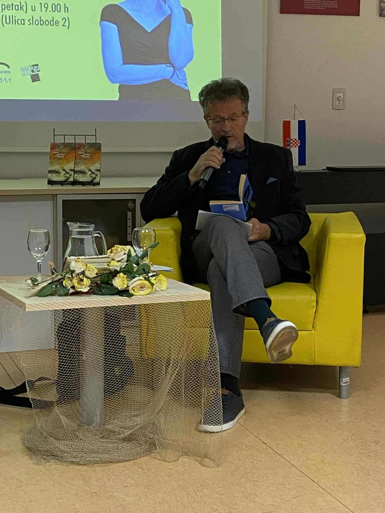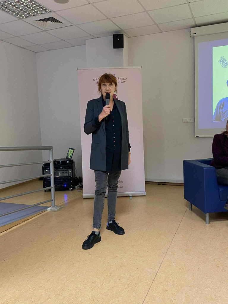Nada Topić je govorila o svojem knjižničarskom, znanstvenom i književnom radu. Iznijela je zanimljive uvide o ulozi knjižnica u današnjem društvu, o promjenama čitateljskih praksi kroz povijest i o potrebi sustavne podrške čitanju. Predstavila je svoje projekte koji povezuju knjižničarstvo i književnost, poput čitateljskog kluba „Kult(na) ura“ u Gradskoj knjižnici Solin te pjesničke tribine „Poezija na katu“ u GKMM-u Split.