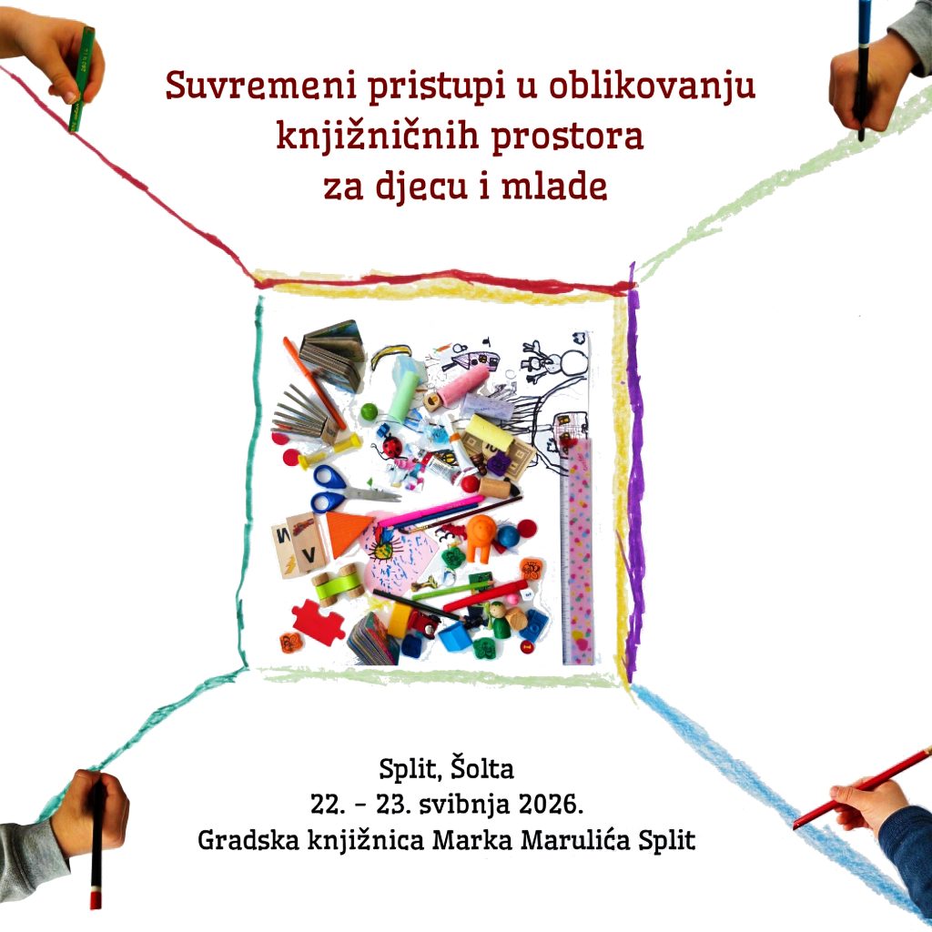 We are inviting librarians, informational experts, architects, psychologists, educators and others that would like to take part in reshaping libraries and turning them into fresh spaces for new generations. Special emphasize will be on creating innovative, flexible and inclusive spaces that will meet the requirements for children and young people in digital and fast social environments. The participants will have the opportunity to learn about good practice examples from Croatia and abroad, to exchange experiences and envisage the library as “third space” i.e. a contemporary safe space for learning, socialising and creativity.